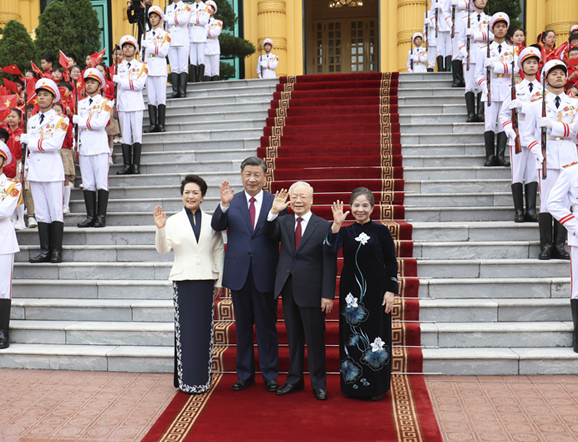 习近平夫妇同越共中央总书记阮富仲夫妇话别