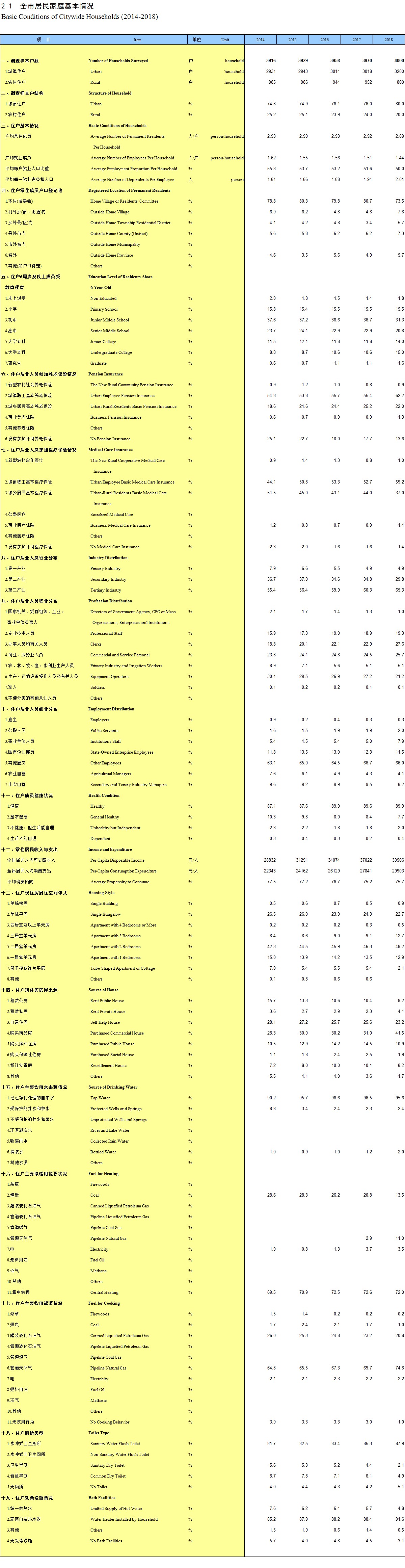 2-1 全市居民家庭基本情况(2014-2018)
