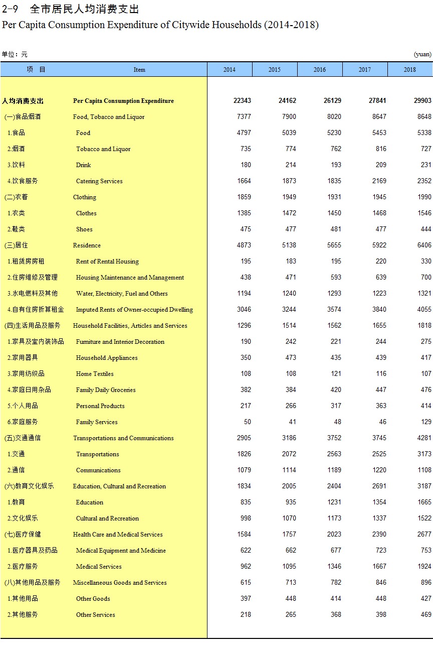 2-9 全市居民人均消费支出(2014-2018)