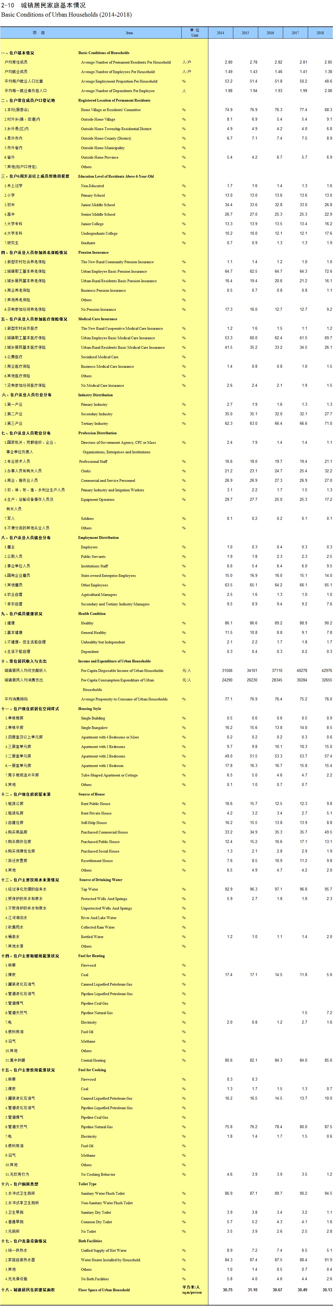 2-10 城镇居民家庭基本情况(2014-2018)