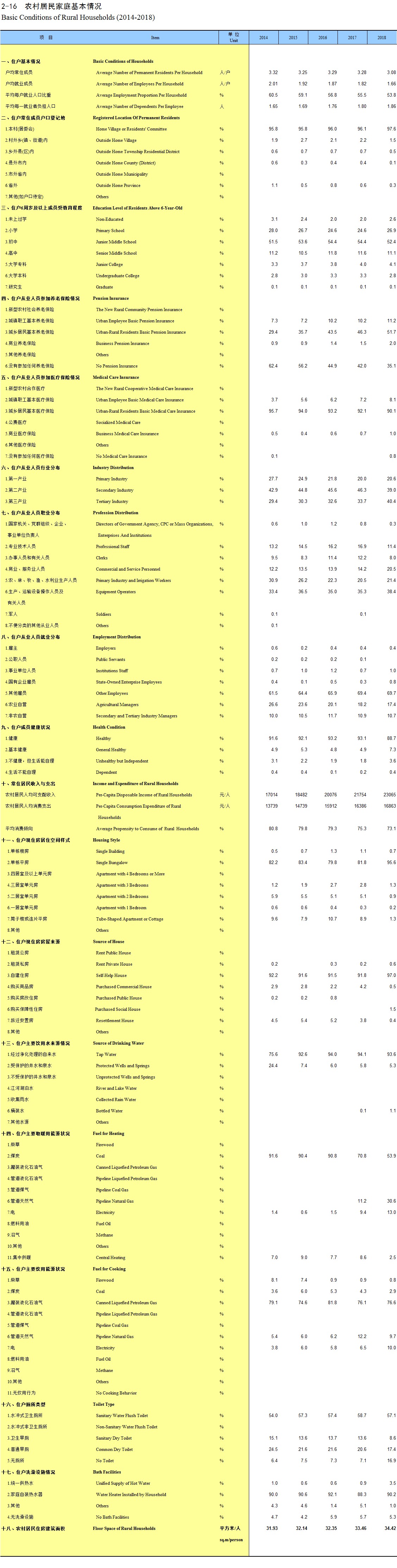 2-16 农村居民家庭基本情况(2014-2018)
