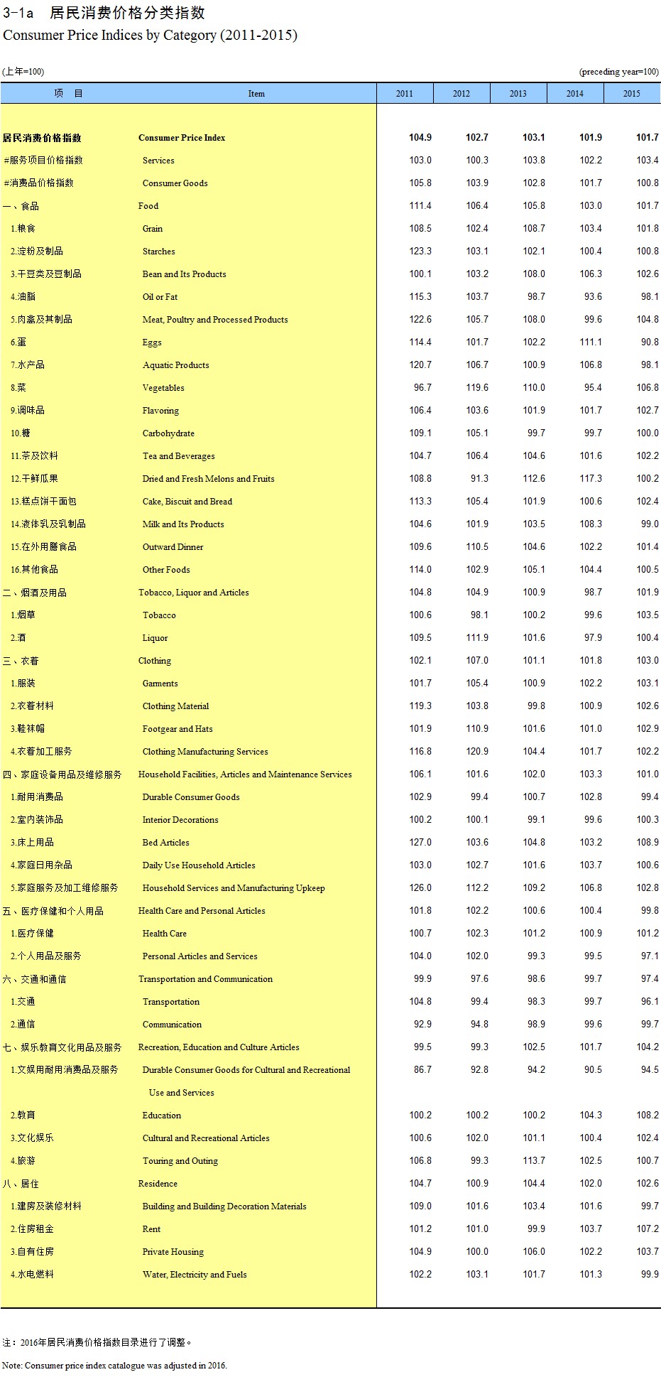 3-1a 居民消费价格分类指数(2011-2015)