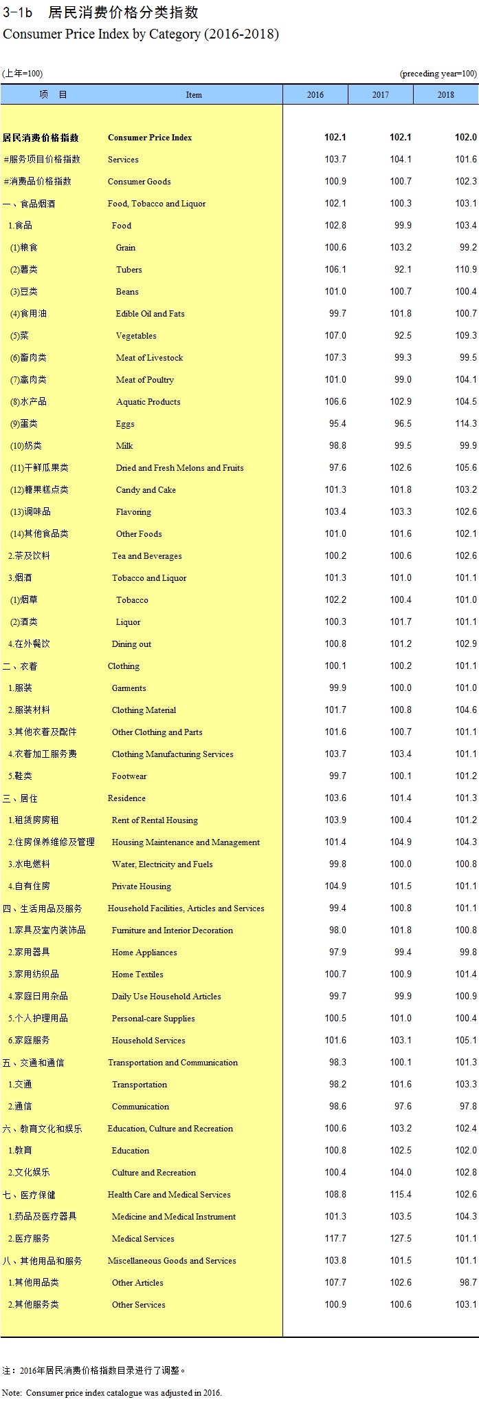 3-1b 居民消费价格分类指数(2016-2018)