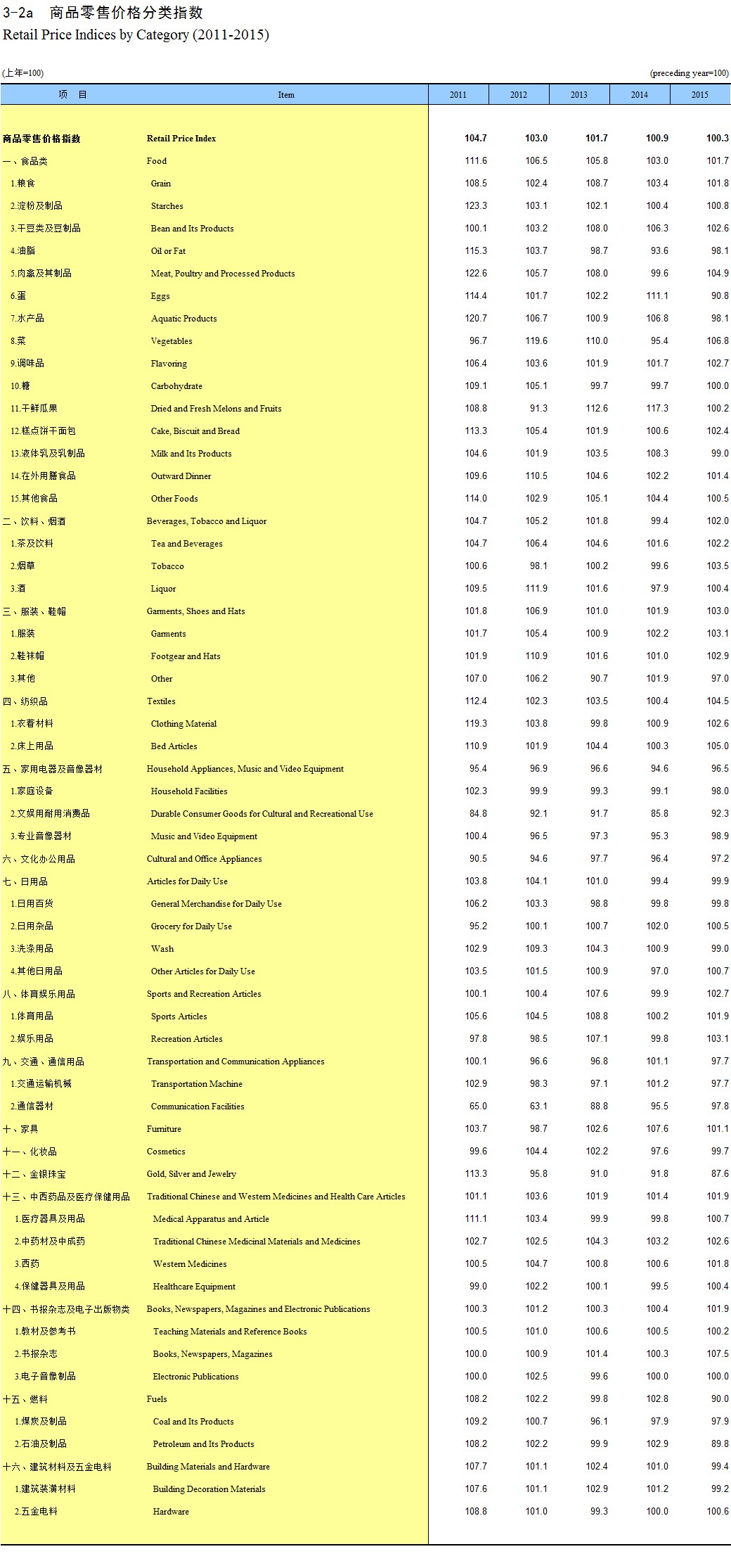 3-2a 商品零售价格分类指数(2011-2015)