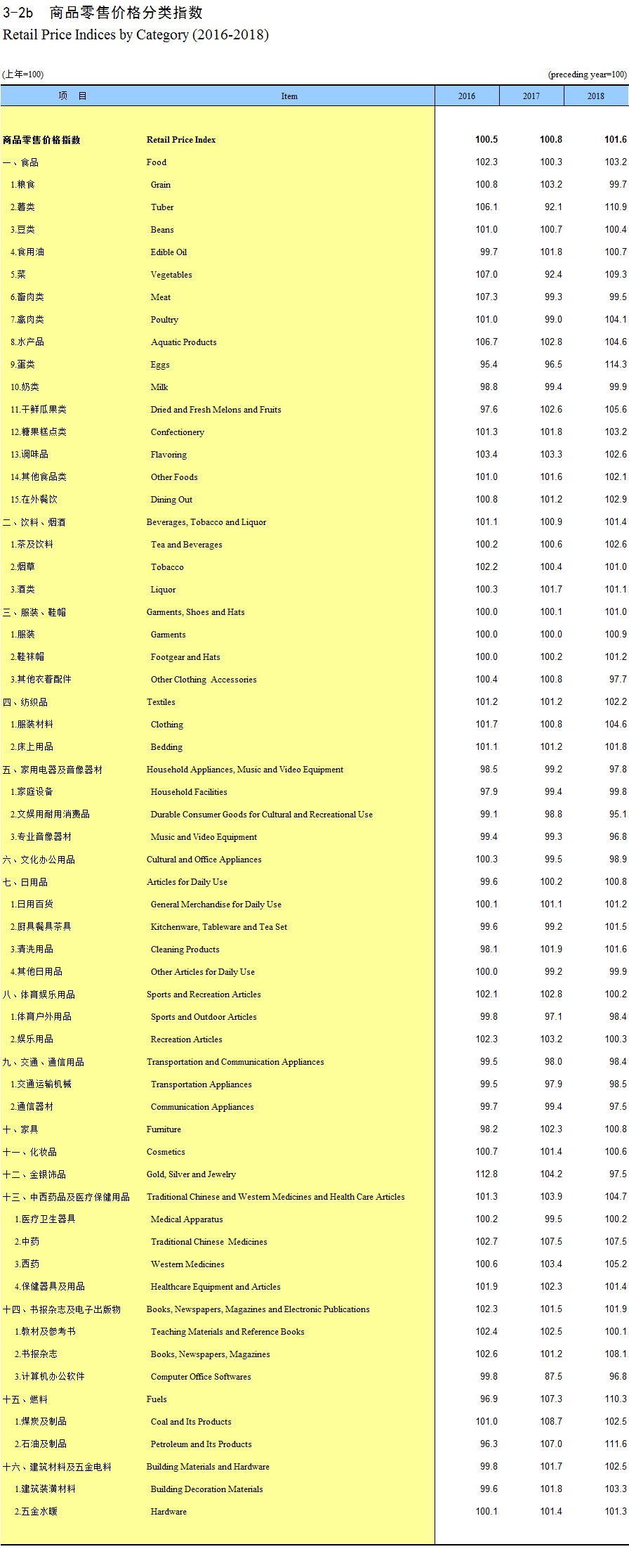 3-2b 商品零售价格分类指数(2016-2018)