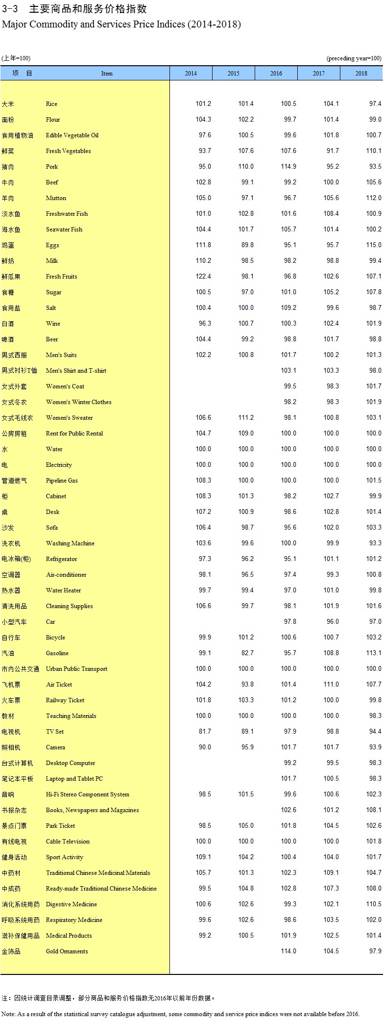 3-3 主要商品和服务价格指数(2014-2018)