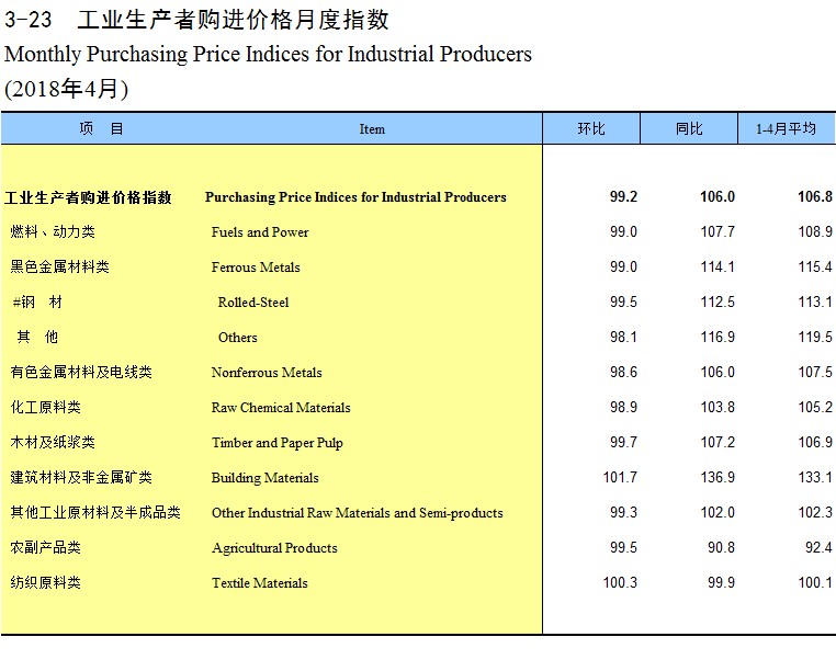 3-24 工业生产者购进价格月度指数(2018年5月)