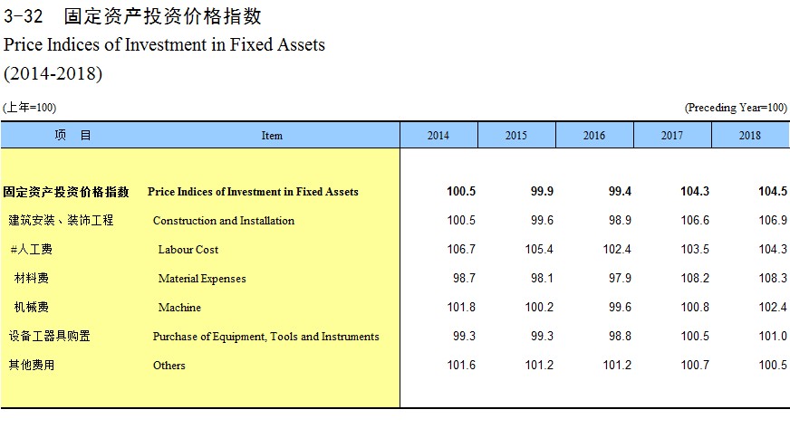 3-32 固定资产投资价格指数(2014-2018)