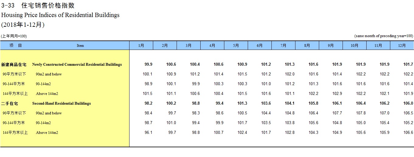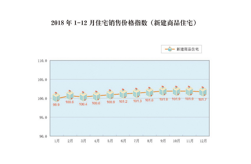 2018年1-12月住宅销售价格指数(新建商品住宅)