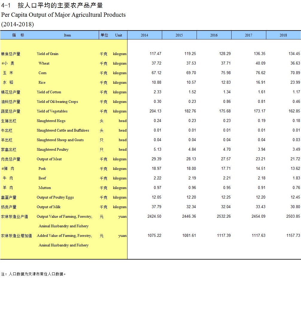 4-1 按人口平均的主要农产品产量(2014-2018)