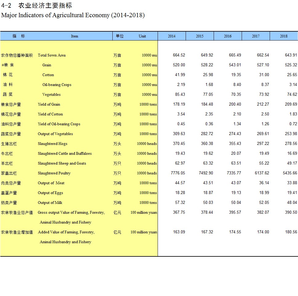 4-2 农业经济主要指标(2014-2018)