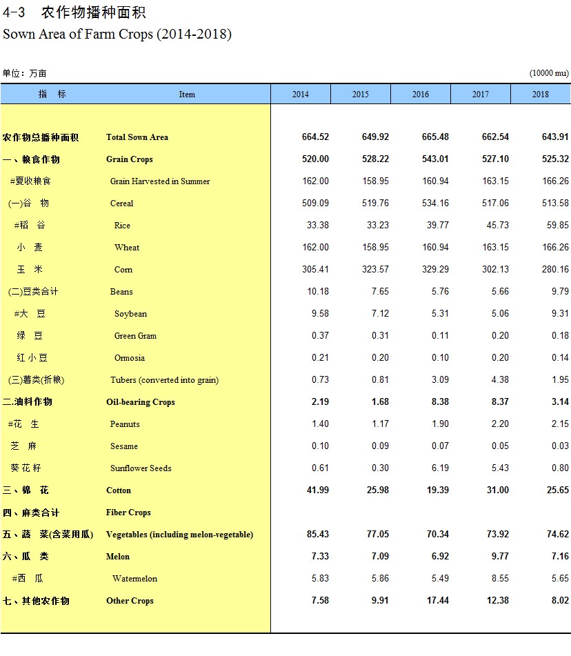 4-3 农作物播种面积(2014-2018)