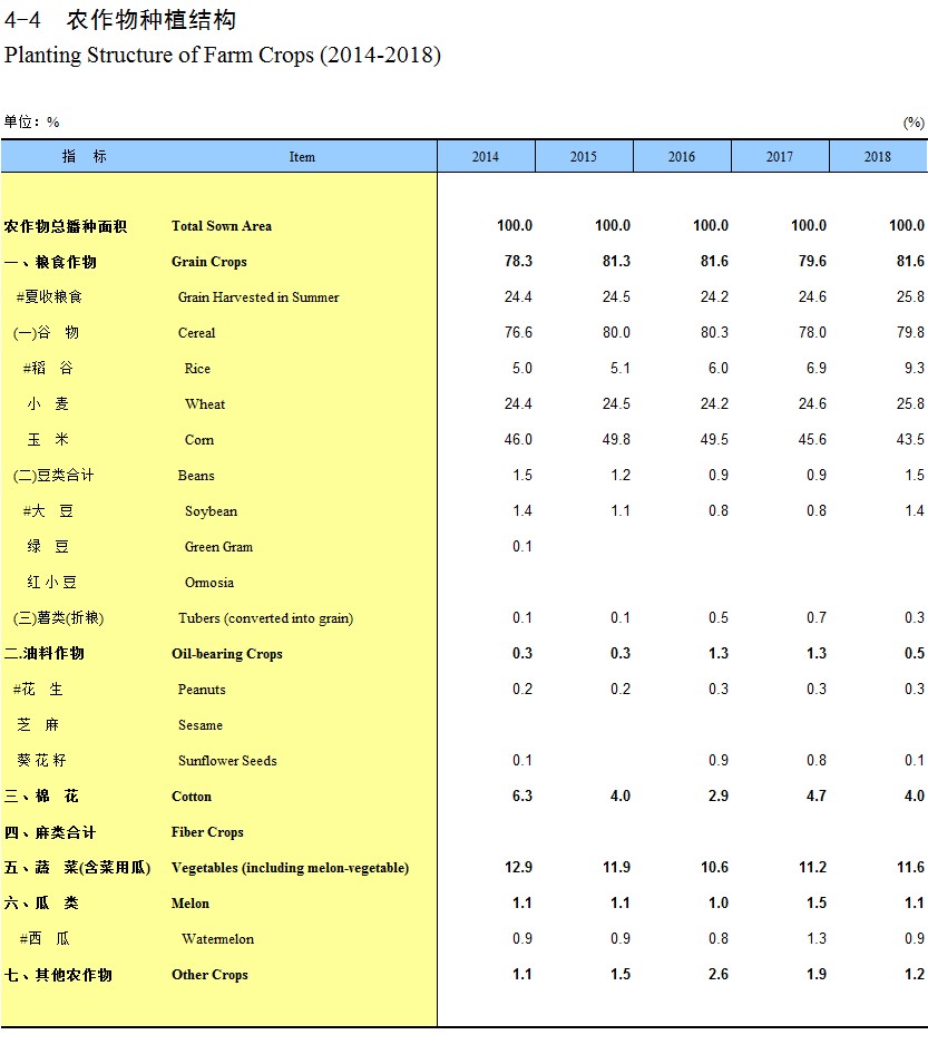 4-4 农作物种植结构(2014-2018)
