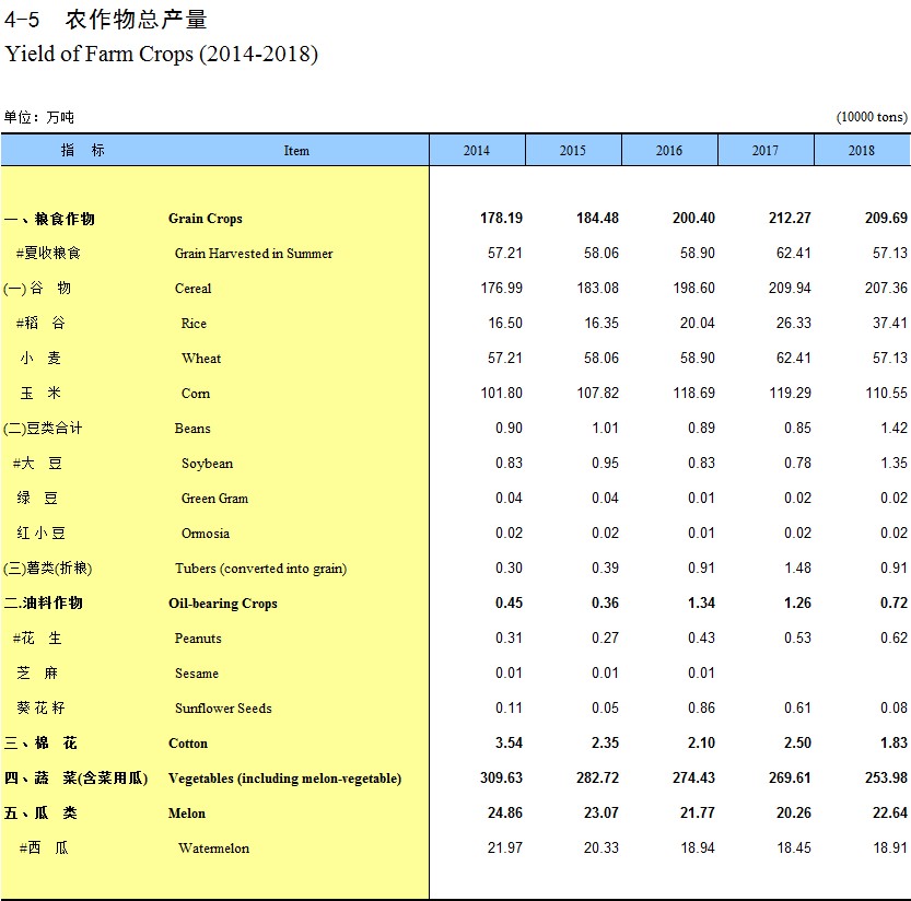 4-5 农作物总产量(2014-2018)