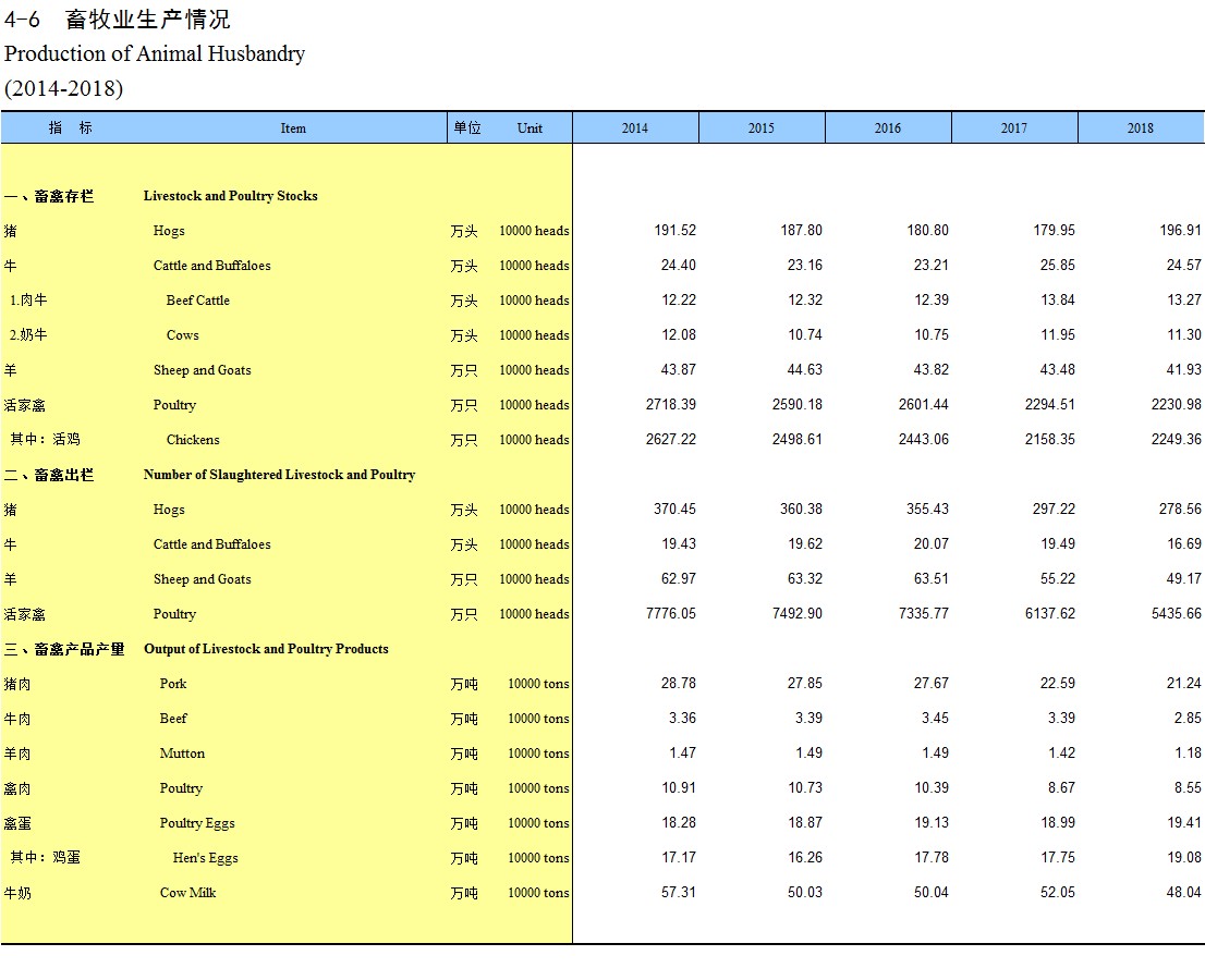 4-6 畜牧业生产情况(2014-2018)