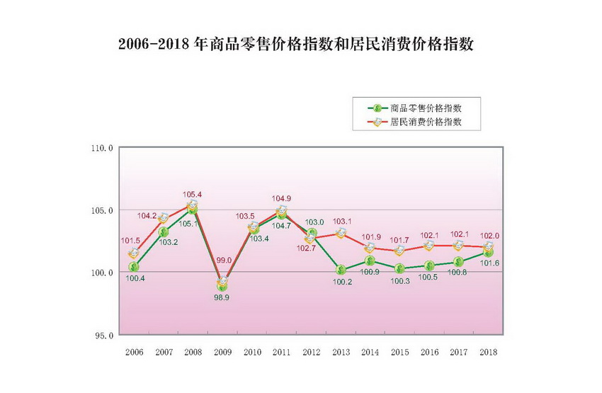 2006-2018年商品零售价格指数和居民消费价格指数