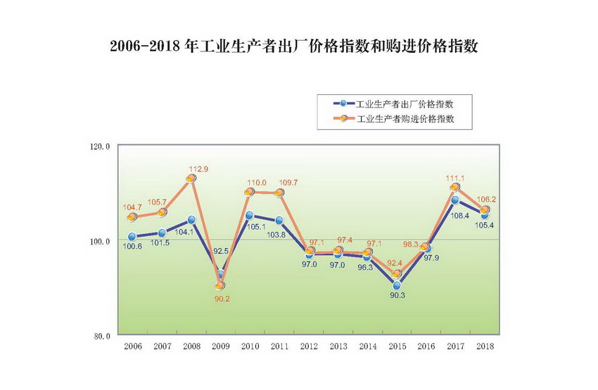 2006-2018年工业生产者出厂价格指数和购进价格指数