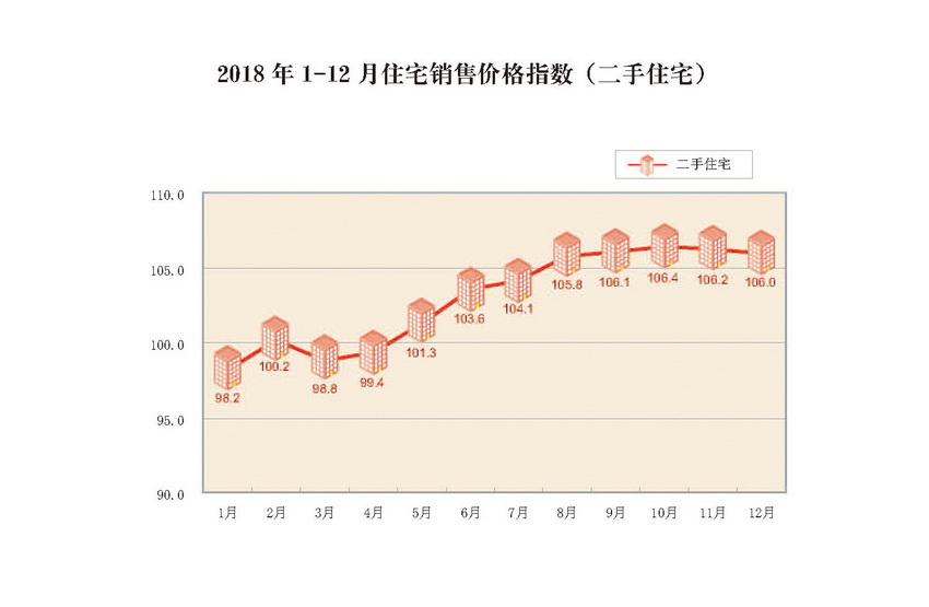 2018年1-12月住宅销售价格指数(二手住宅)