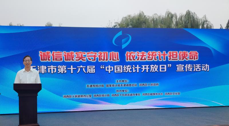 为持续推动统计现代化改革,促进统计公开透明,进一步提升政府统计公信力,9月24日下午,由天津市统计局、国家统计局天津调查总队、河西区人民政府联合主办的天津市第十六届“中国统计开放日”宣传活动在河西区人民公园举行。市统计局党组书记、局长冯嘉强,国家统计局天津调查总队党组书记、总队长王贵荣,河西区委常委、常务副区长崔振平在活动现场致辞。市统计局、国家统计局天津调查总队总师出席活动。