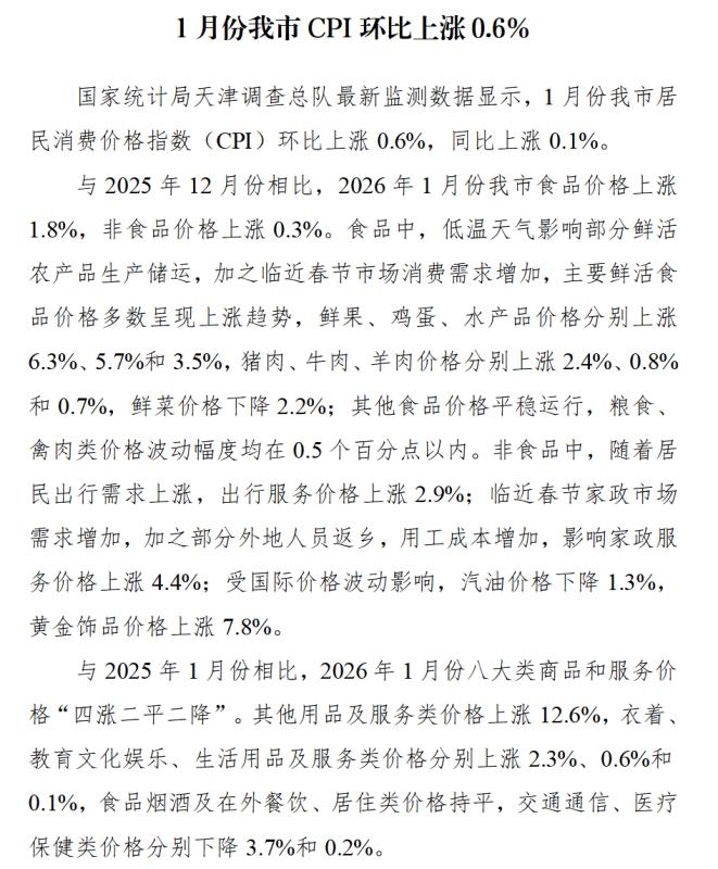 解读:消费价格调查处解读1月份我市CPI环比上涨0.6%